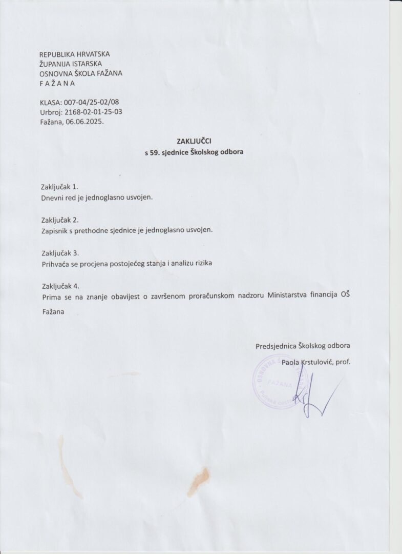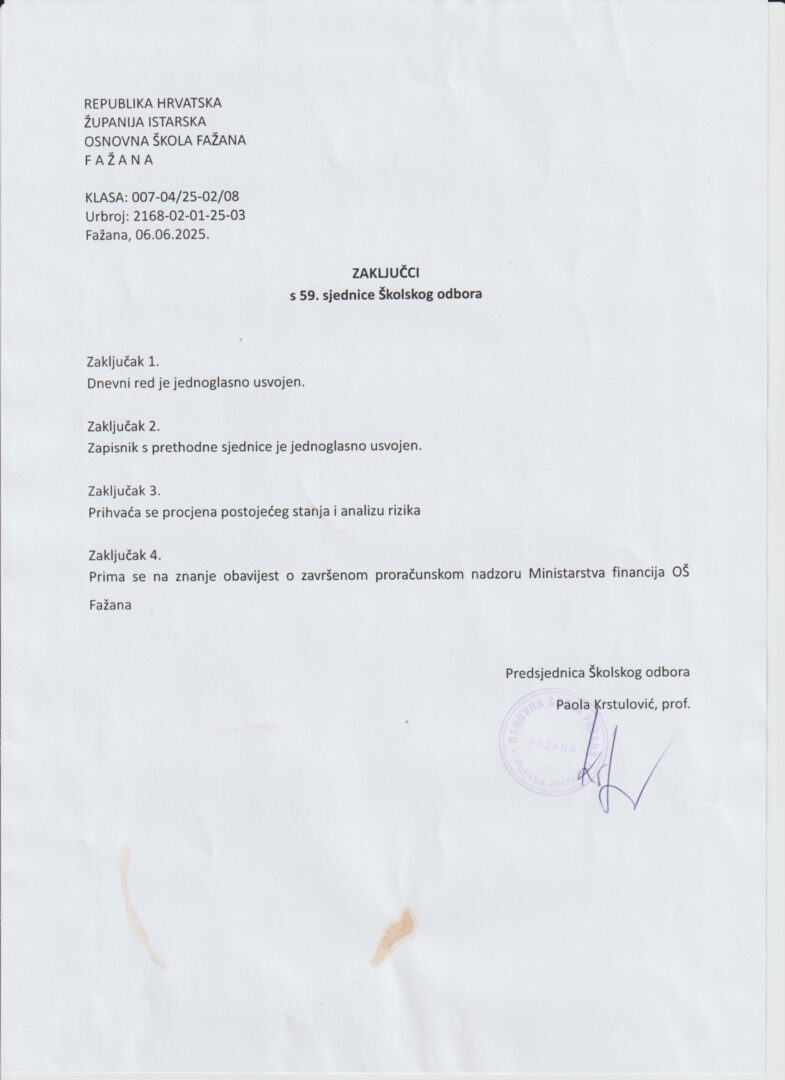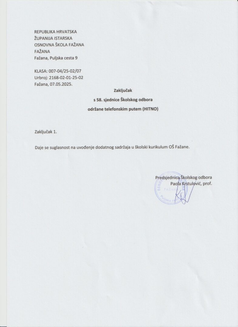 - Članica ŠO iz reda roditelja: Martina Klarić Županić – zamjenica predsjednice
