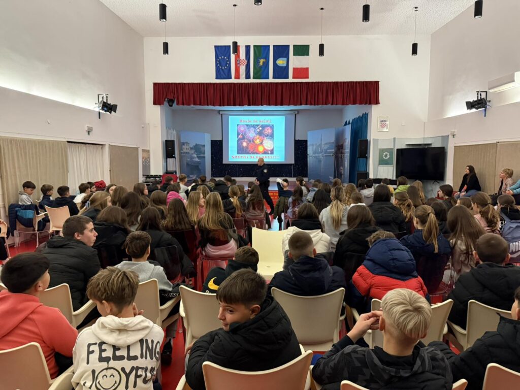 Fažana – Dana 8. prosinca 2025. Multimedijalni centar Fažana pretvorio se u učionicu sigurnosti. Djelatnici Policijske uprave Pula – Odjela za pirotehniku održali su predavanje namijenjeno učenicima od 5. do 8. razreda Osnovne škole Fažana, s ciljem podizanja svijesti o opasnostima koje donosi uporaba pirotehničkih sredstava.